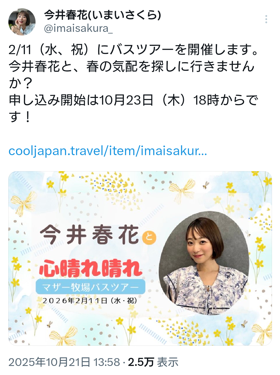 https://cooljapan.travel/item/imaisakura-2026/ - 388 : 名無しステーション : 2025/10/25(土) 07:43:16.90 ID:/ORUd5v50