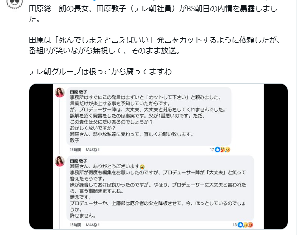 事務所はマズイと思ったが田原総一郎本人はマズイと思ってないんだろうな