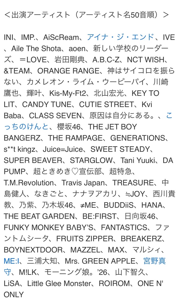 【お知らせ】今年のCDTV年越しフェスの面子(´・ω・`)