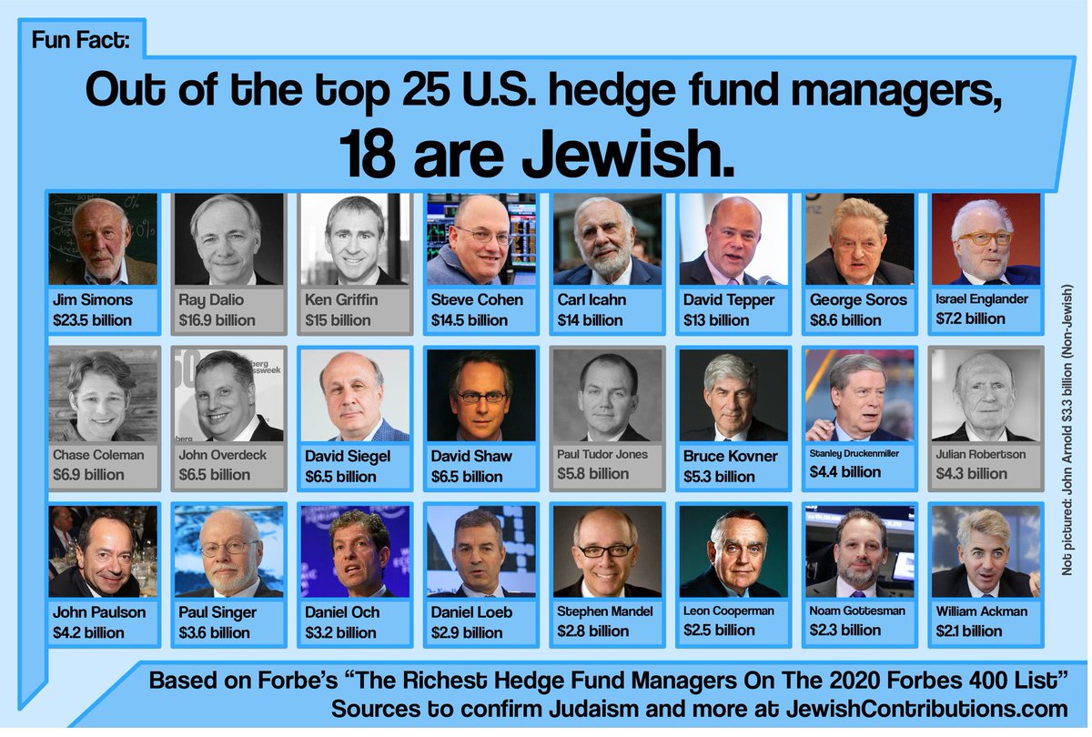 アメリカのヘッジファンドマネージャーのトップ25人中、18人はユダヤ人