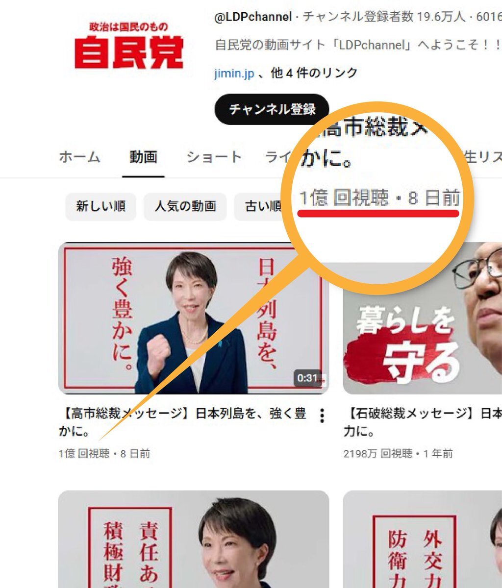 - 【朗報】「高市総裁メッセージ」日本のYouTube動画史上最速の1億再生を突破し話題に!!!!!!!!!