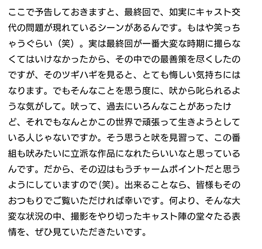 役者使えない状態でもスケジュール変えられなかったんだな - 700 : 名無しステーション : 2026/02/08(日) 10:15:35.99 ID:8cQGd5q90