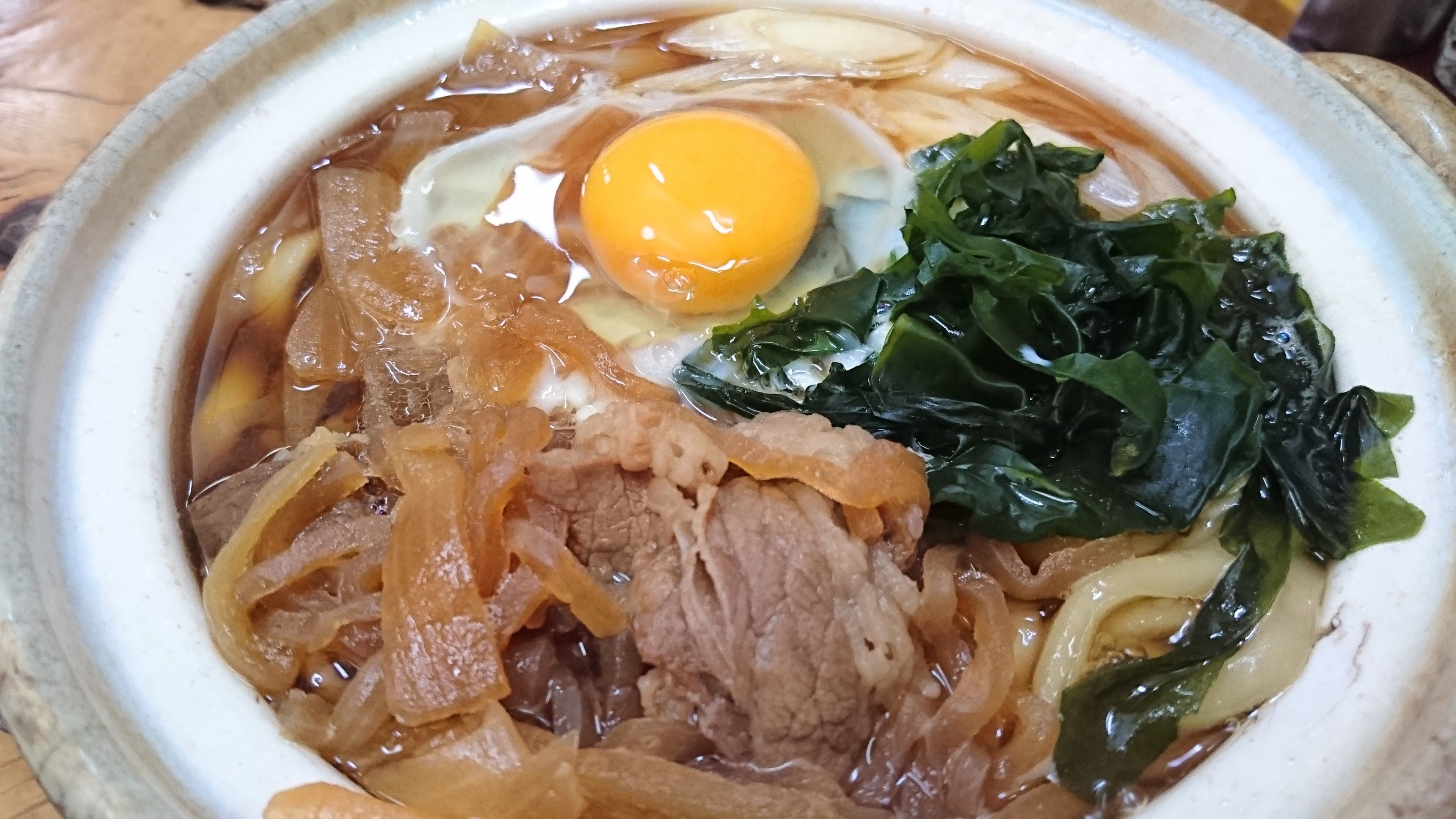 〆は添付の白飯に煮えて半熟となった卵、お肉、玉ねぎ、つきこんにゃく、わかめ、薬味の刻みネギを盛り付けて汁もかけミニすき焼き丼が楽しみなのれす🤤