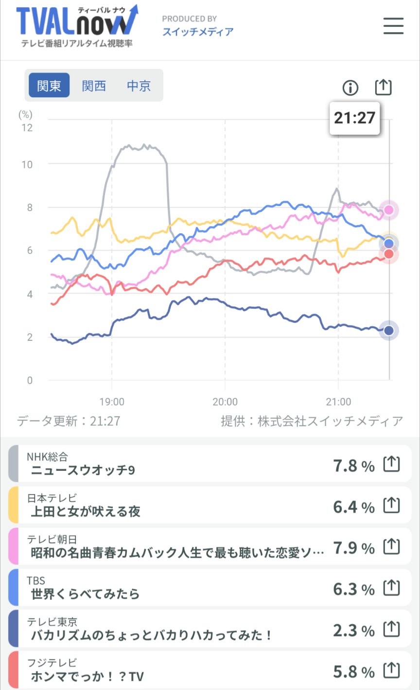 視聴率1位なったw