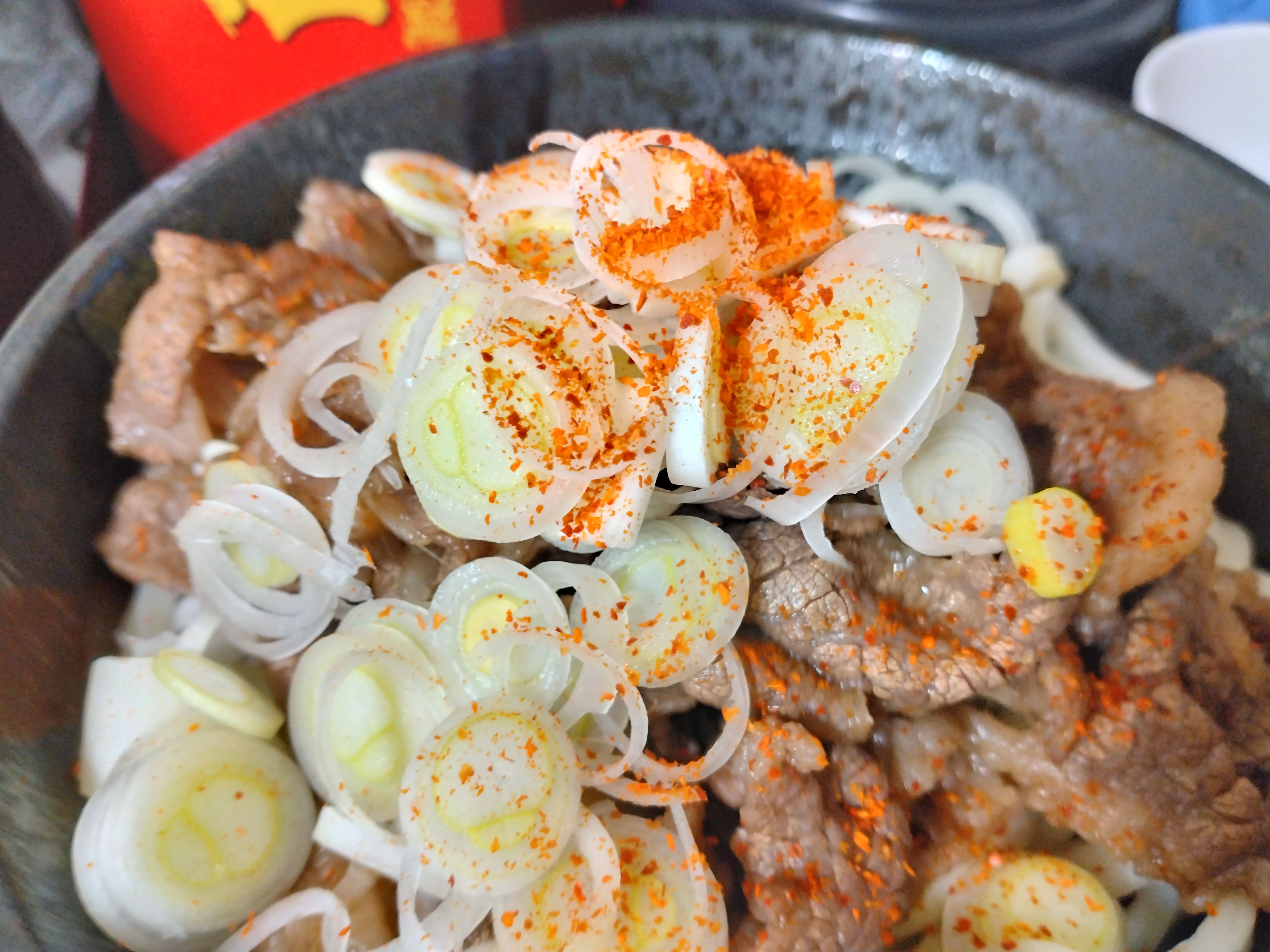 今朝は薬味ネギすら入れずに麺と一味唐辛子のみのかけうどん