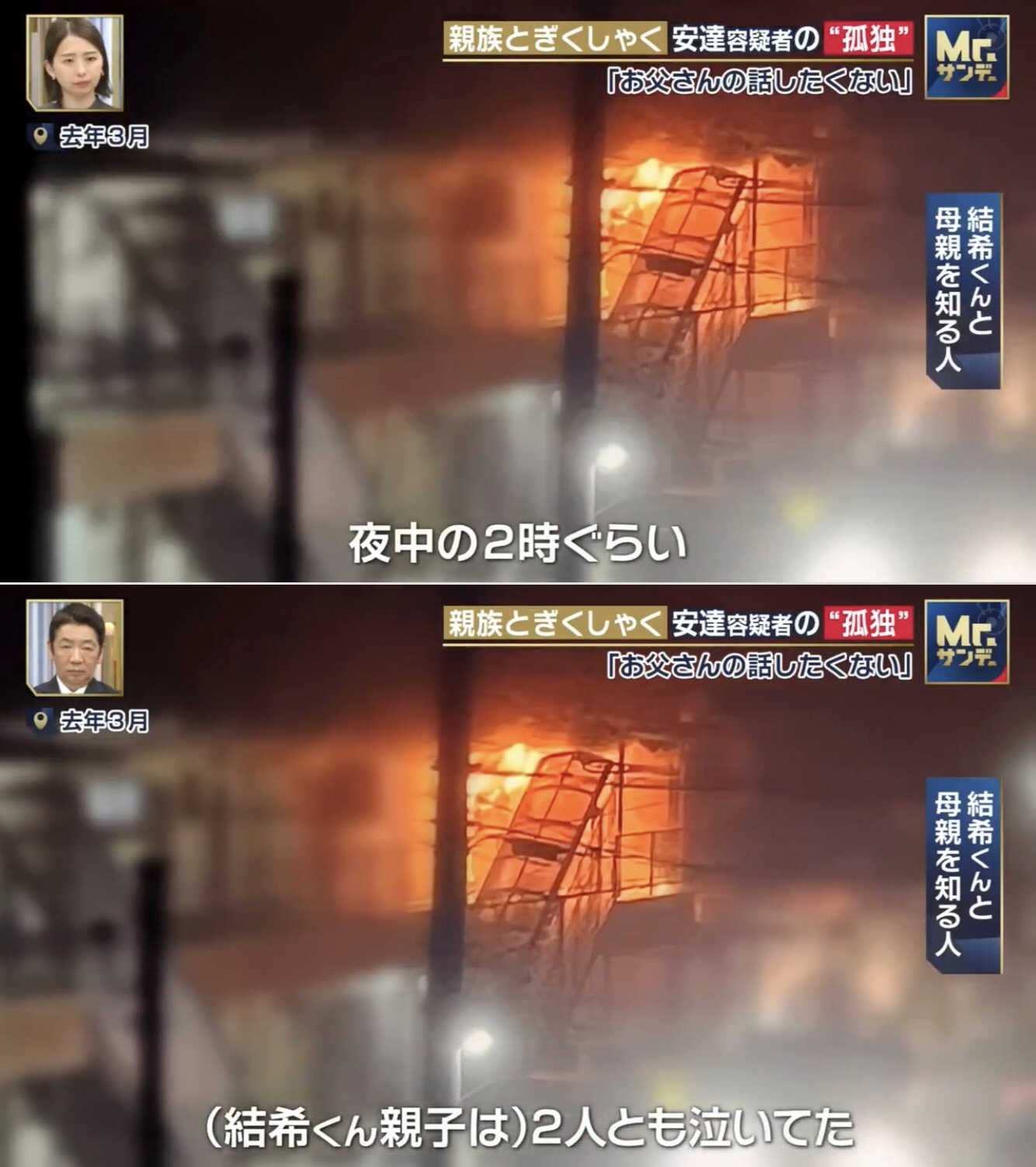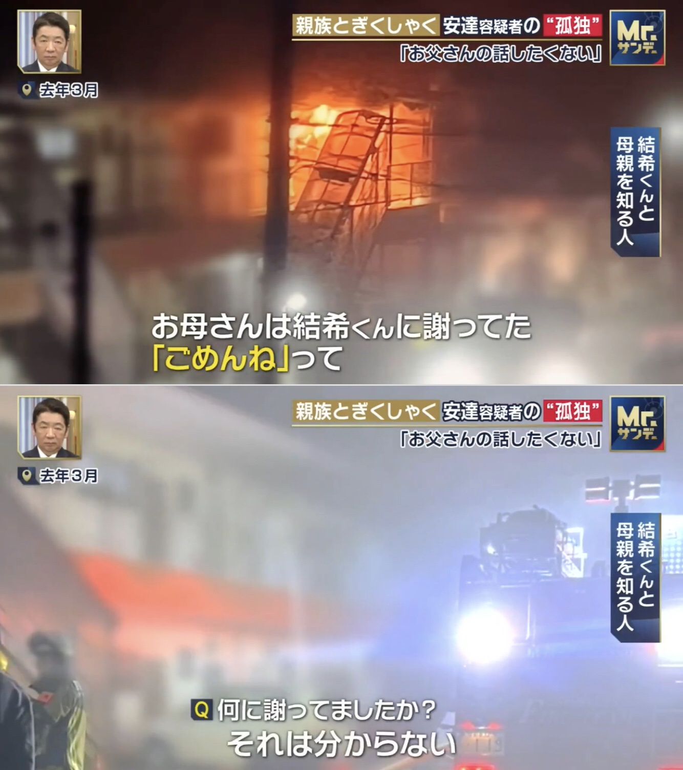 >ネットではボヤ騒ぎって見たから大したことなかったのかと思ったらMr.サンデーの映像では部屋真っ赤ですごい火事やんけ!て思った
