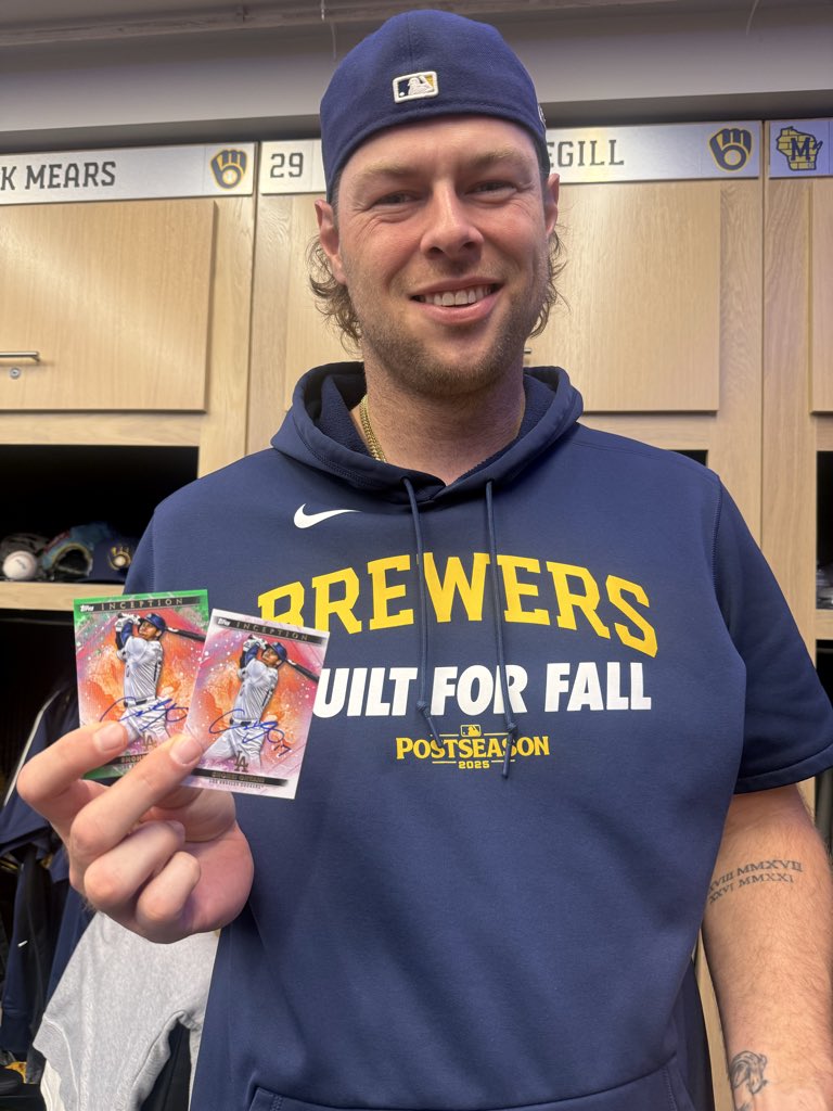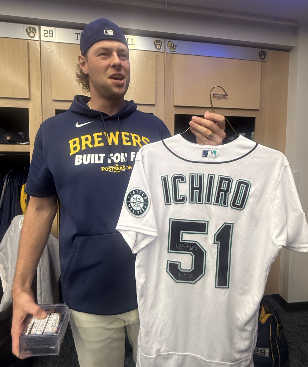 今年のオールスターで大谷にサインしてもらったカードとイチローのサイン入りユニを記者陣に自慢するメギル
