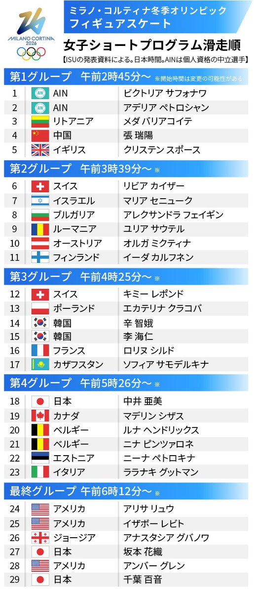 - 女子シングルSP滑走順 Xから