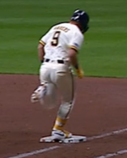 - CBバックナー「一塁踏んでなかったのでアウト!!」