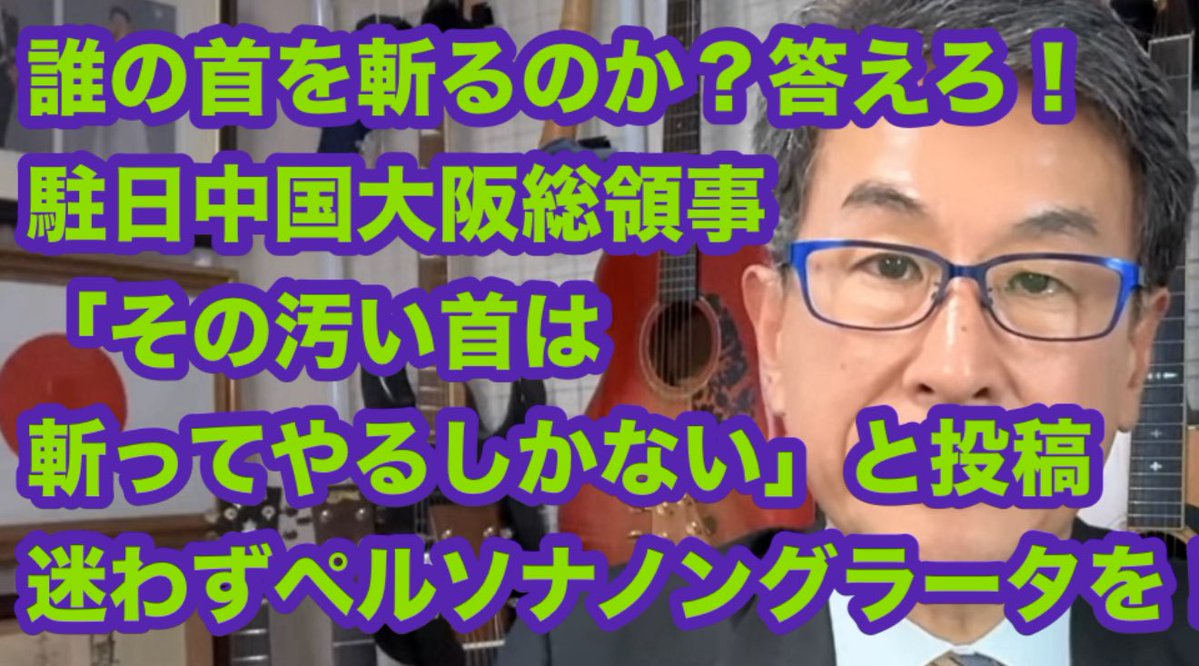 駐日中国大阪総領事「その汚い首は斬ってやるしかない」と投稿