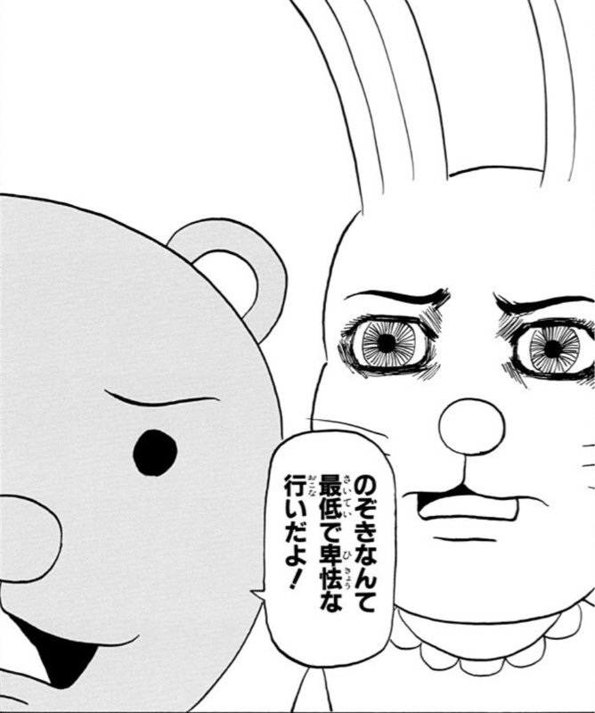 クマ吉「のぞきなんて最低で卑怯な行いだよ」