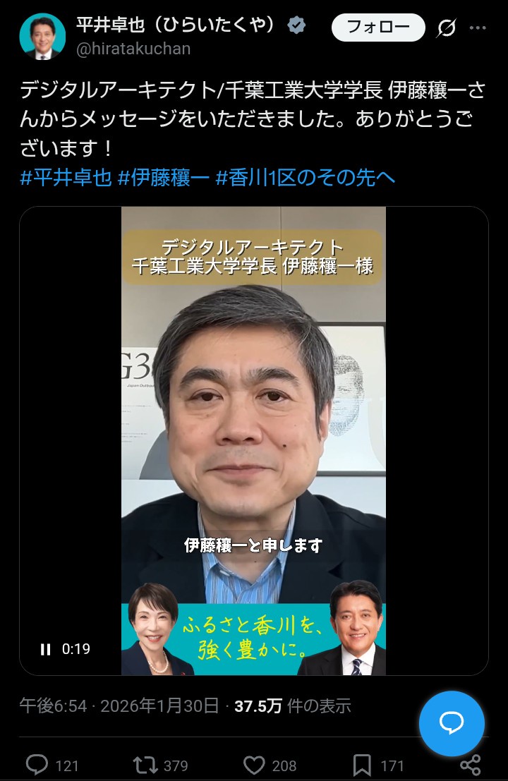 - 香川県民はエプスタイン一味の伊藤穰一とズブズブの平井卓也をちゃんと落とせよな