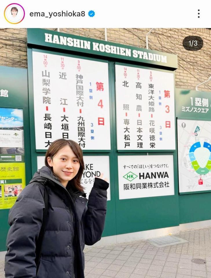 - 地元に帰って甲子園観戦のエマ