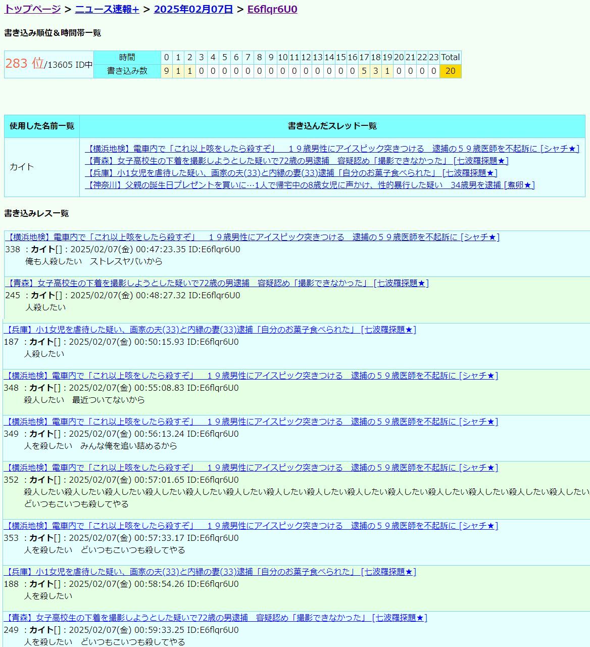 こいつ何回も自殺予告 〇害予告してるキチガイ