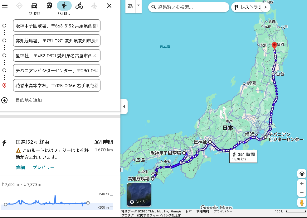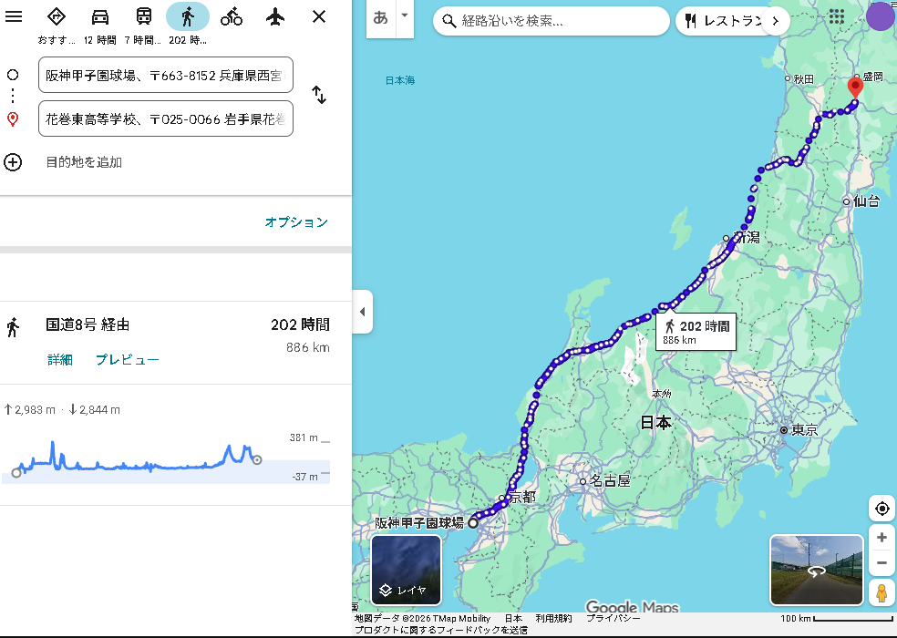 ※尚、甲子園球場→甲子園口駅の約2.7kmは9分で突っ走れます。