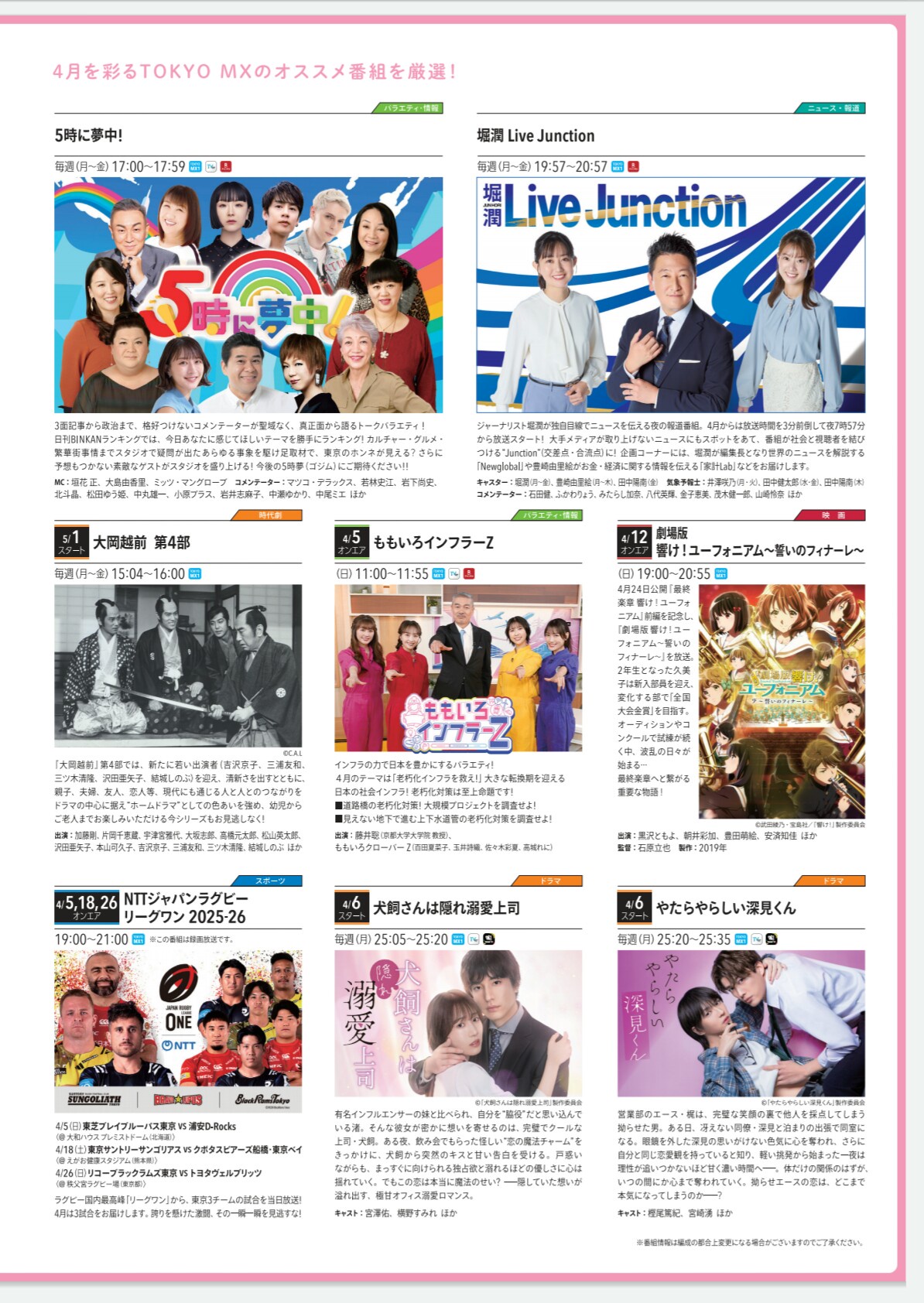- MX新年度のタイムテーブル