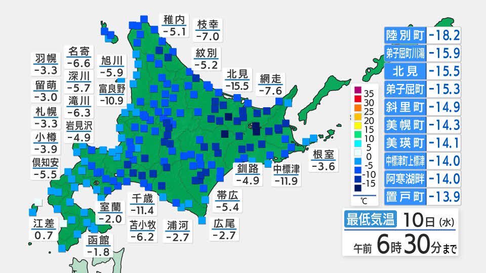 - 今朝の北海道の気温
