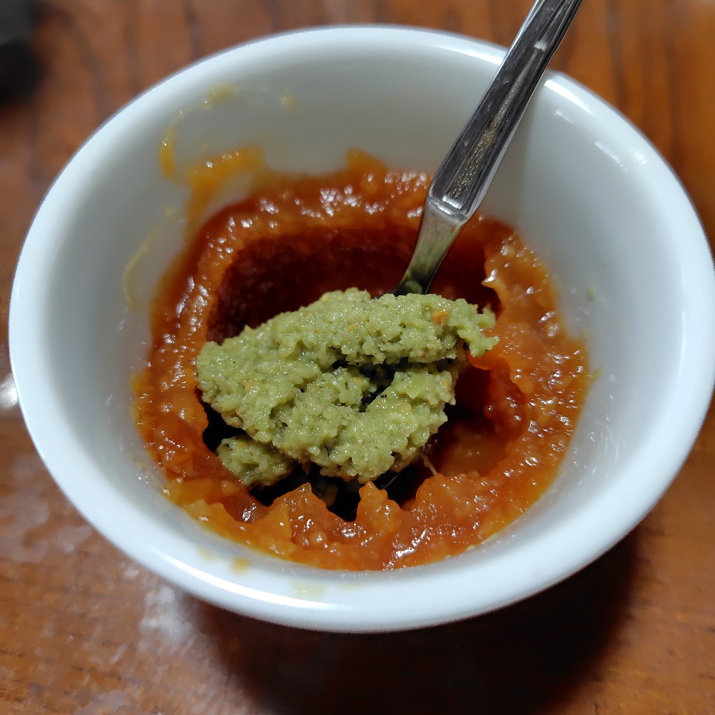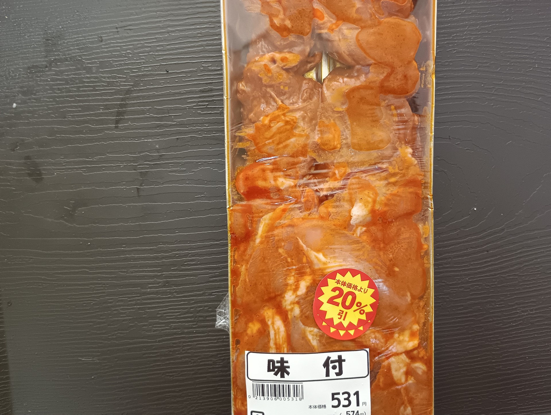 - ハナマサで味付タンドリーチキン買ってきた、今日は半分焼いて、これから飯にするわ。味噌汁はナメコとワカメに納豆と白菜の浅漬けも買ってきたぜ