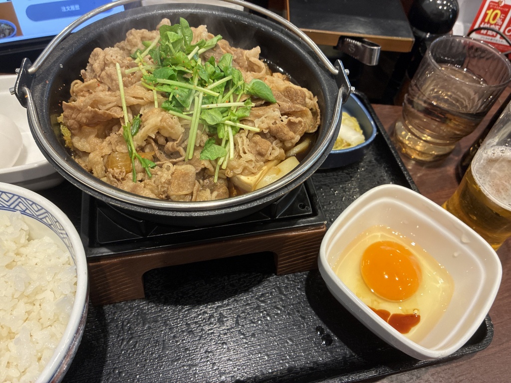 すきやき定食肉ダブル!ビール500㍑!これでたったの1880円!m9⎛´・ω・`⎞ドーン!