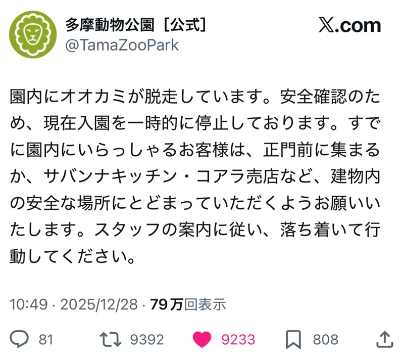 - オオオカミ🐺が脱走となΣ(゚∀゚ノ)ノ