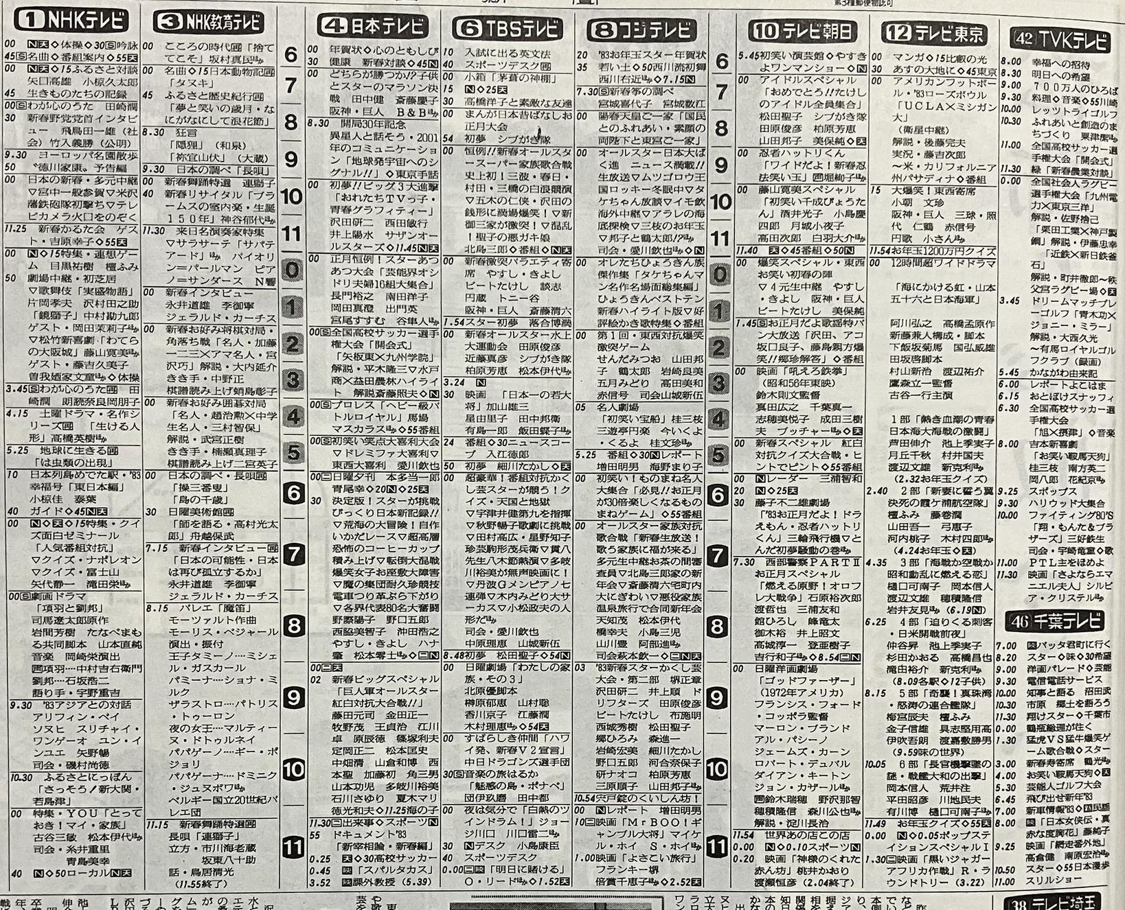 42年前(1983年)の1月2日のテレビ欄(´・ω・`)