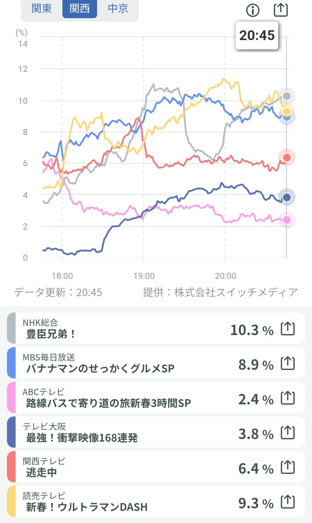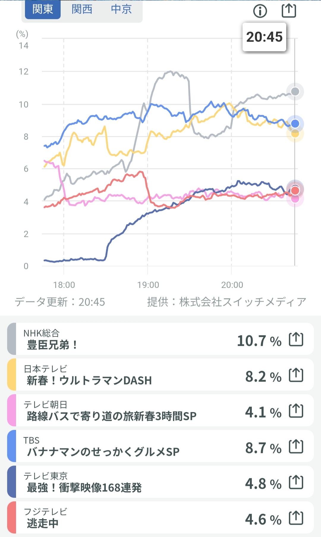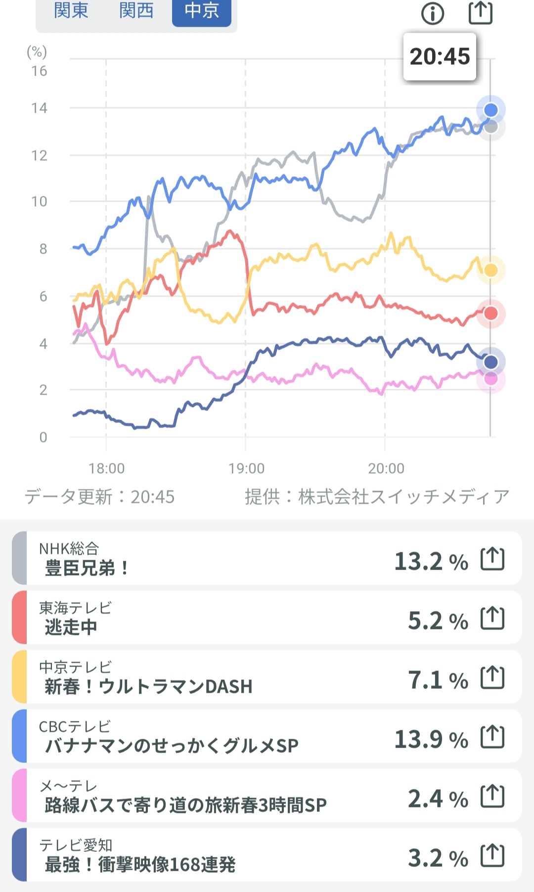 - リアルタイム視聴率 関東関西中京