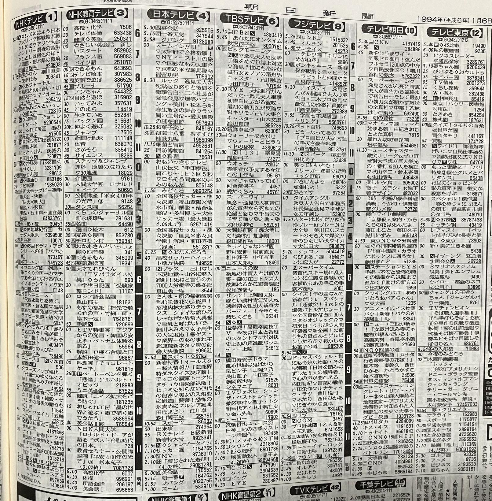 32年前(1994年)の1月6日のテレビ欄(´・ω・`)
