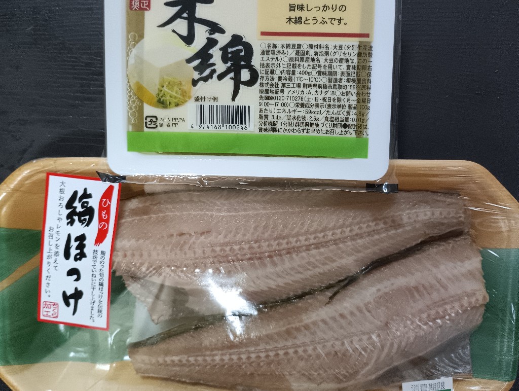 今日はホッケ焼いて、汁物は湯豆腐だよ。後は漬物