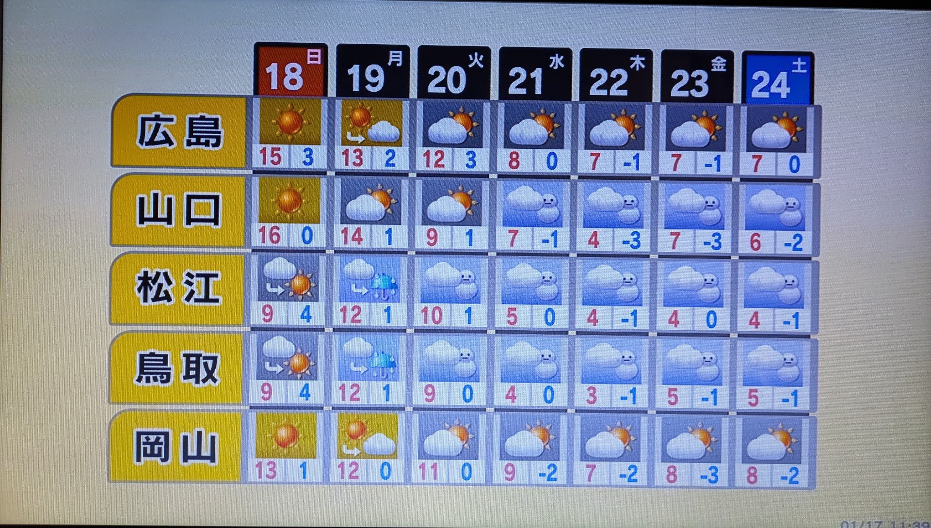 週間予報@ちうごく