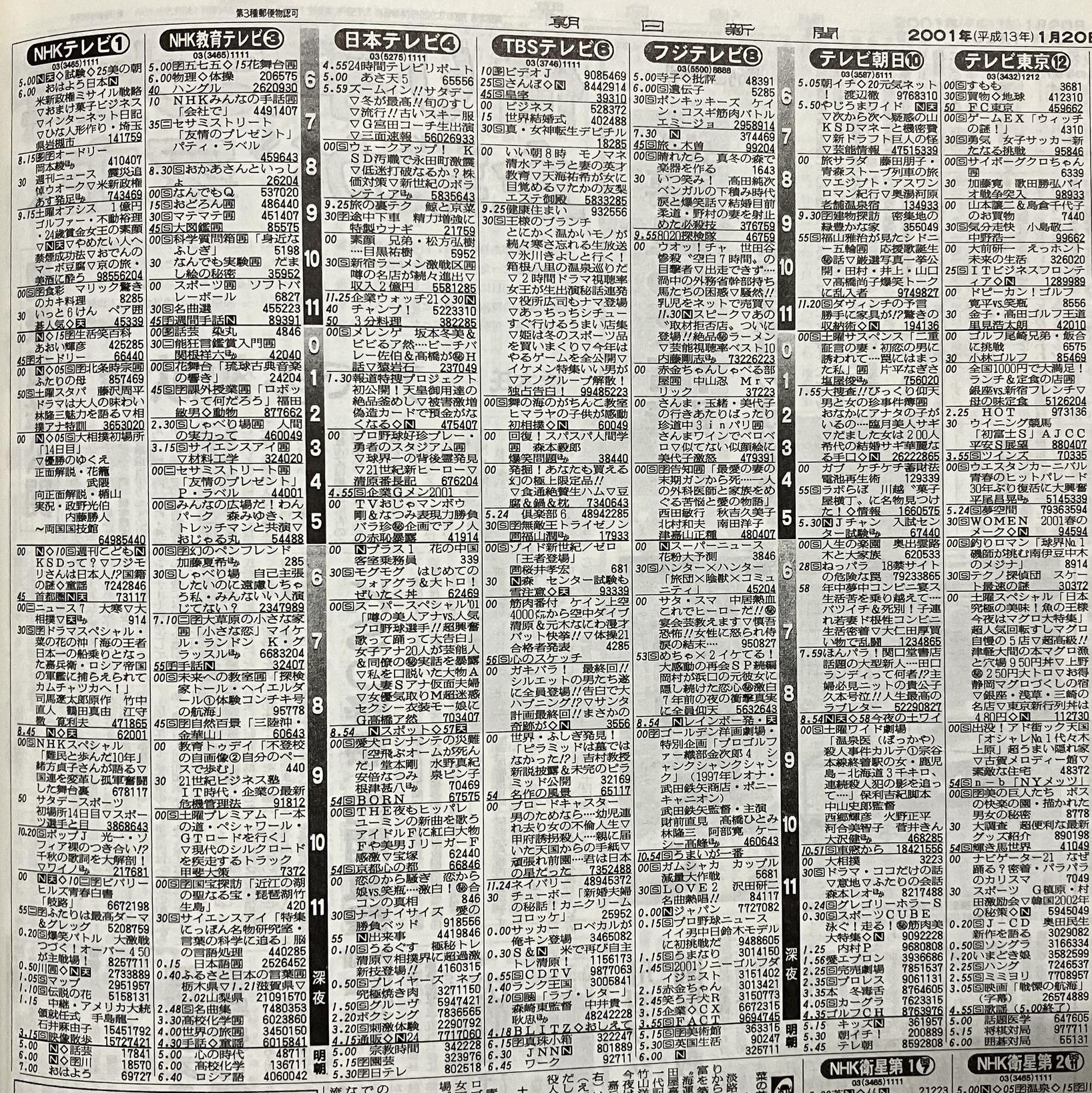 - 今から25年前の1月20日のテレビ番組表(´・ω・`)