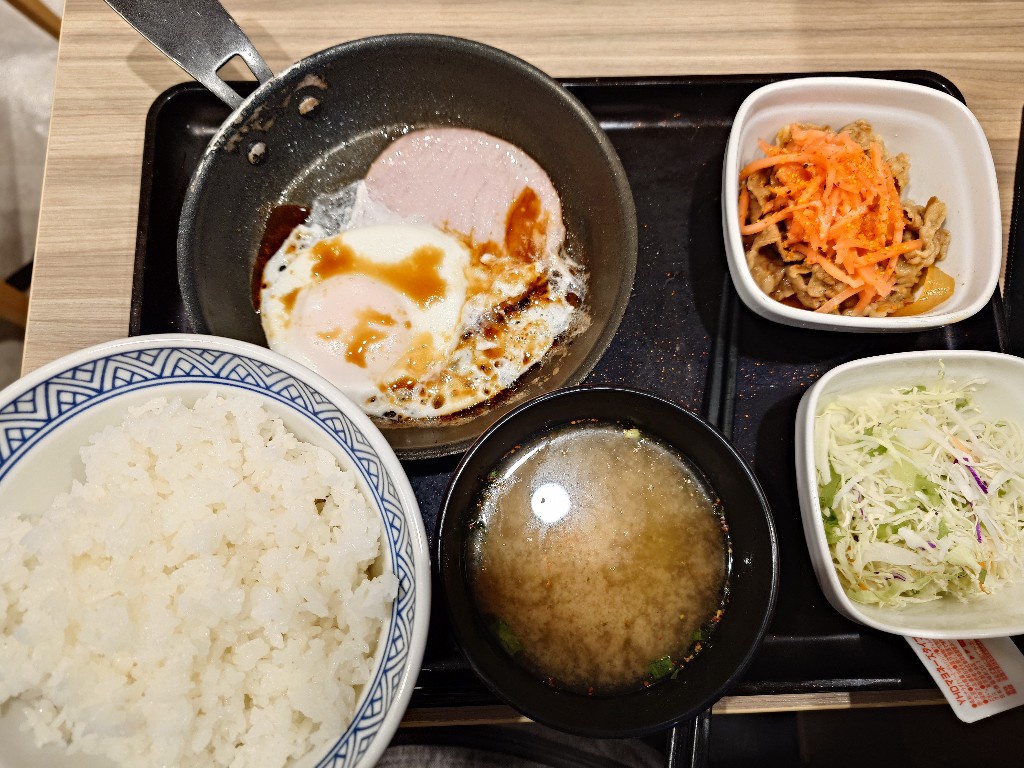 - 今朝は吉野家でハムエッグ牛小鉢定食をご飯大盛りで美味しくたべていたのであるが、比較的民度の高い店内だったよヽ(´ー`)ノ