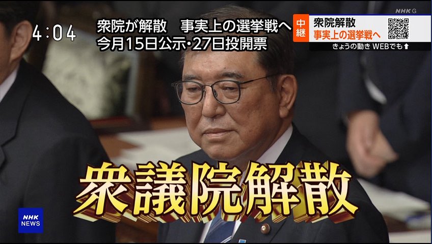 - NHKの「衆議院解散」のテロップを復習✏