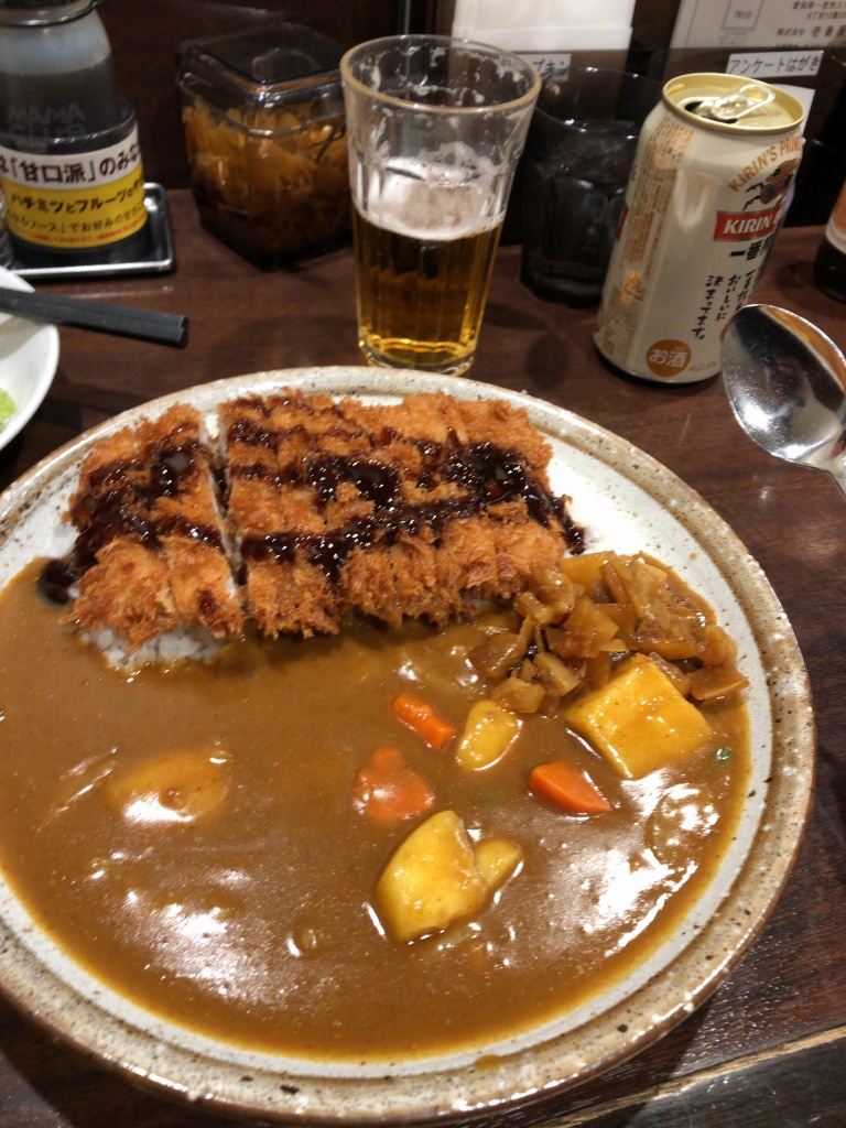 カツカレー!野菜プラス!サラダ!ビール350㍑!1月22日はカレーの日!m9⎛´・ω・`⎞ドーン!