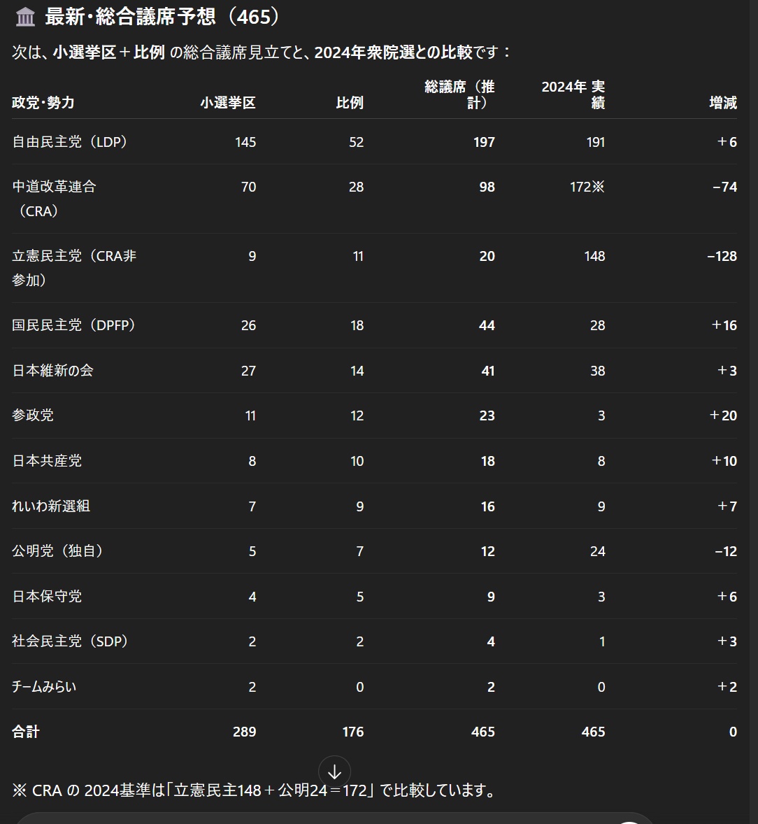 チャッピーさんは自民微増を予想