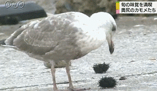 鳥が大きすぎる魚を飲み込もうとして失敗する様子……