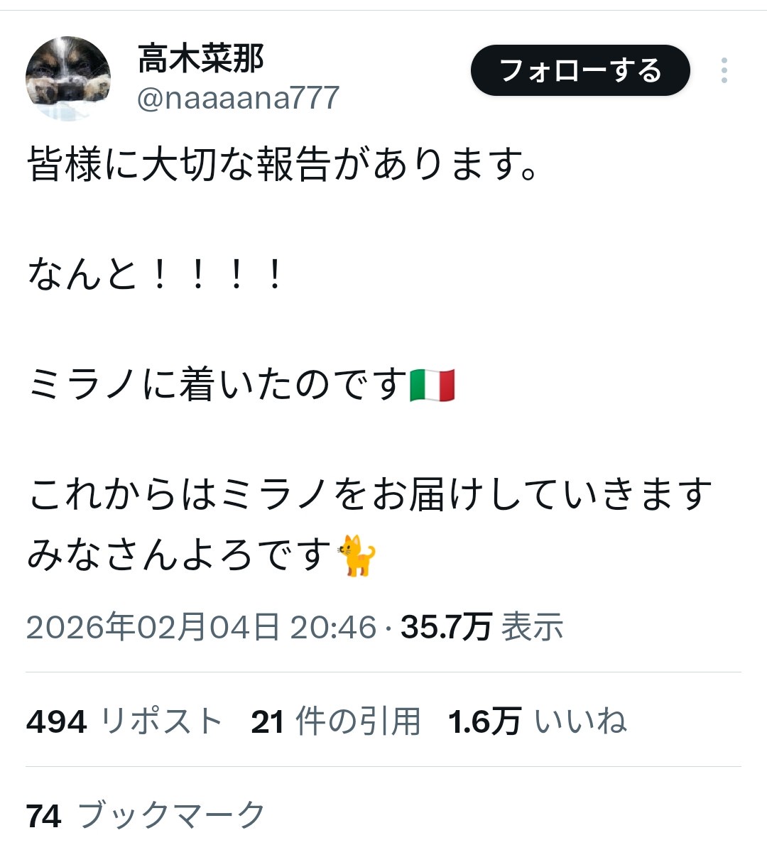 - 高木菜那さん 現地入りしてるな