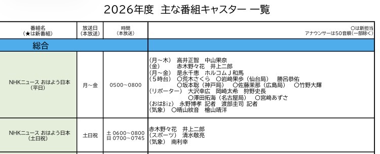 - 4月からのおはよう日本に入るアナウンサー