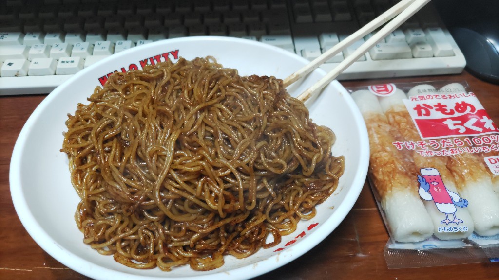 具なし焼きそばと、かもめちくわ・・・