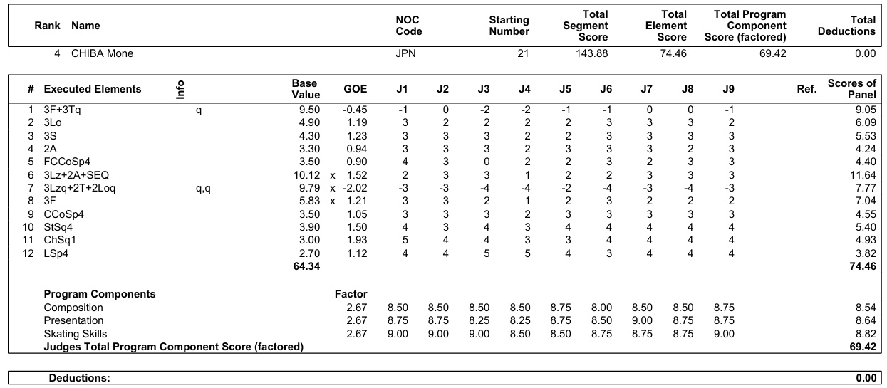 - フリー 採点内容