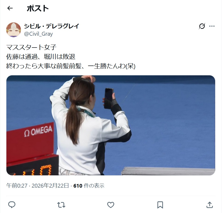正直、前髪は男子の負けた人たちの方が気にしてたよなw - 842 : 公共放送名無しさん: 2026/02/22(日) 01:45:00.73 ID:AxXFUJcs