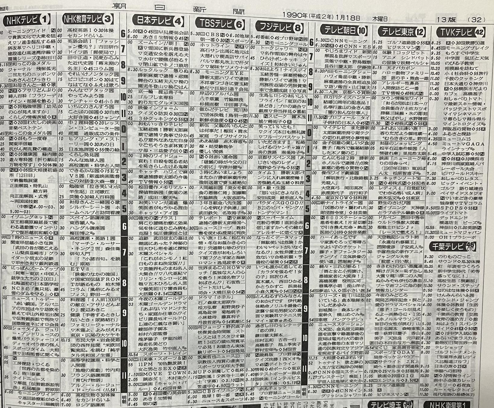 - この番組やってた1990年のテレビ番組表(´・ω・`)