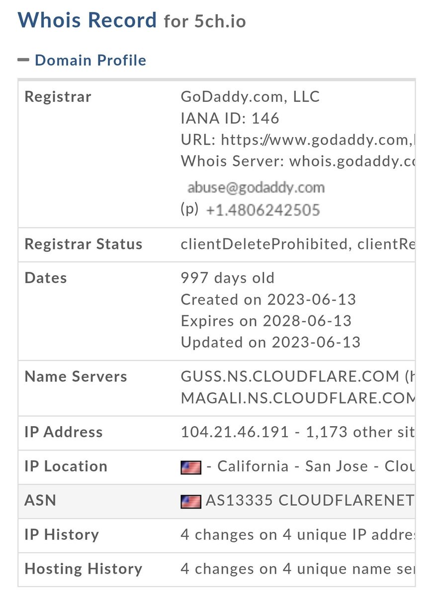 5ch.io は GoDaddy+Cloudflare 系