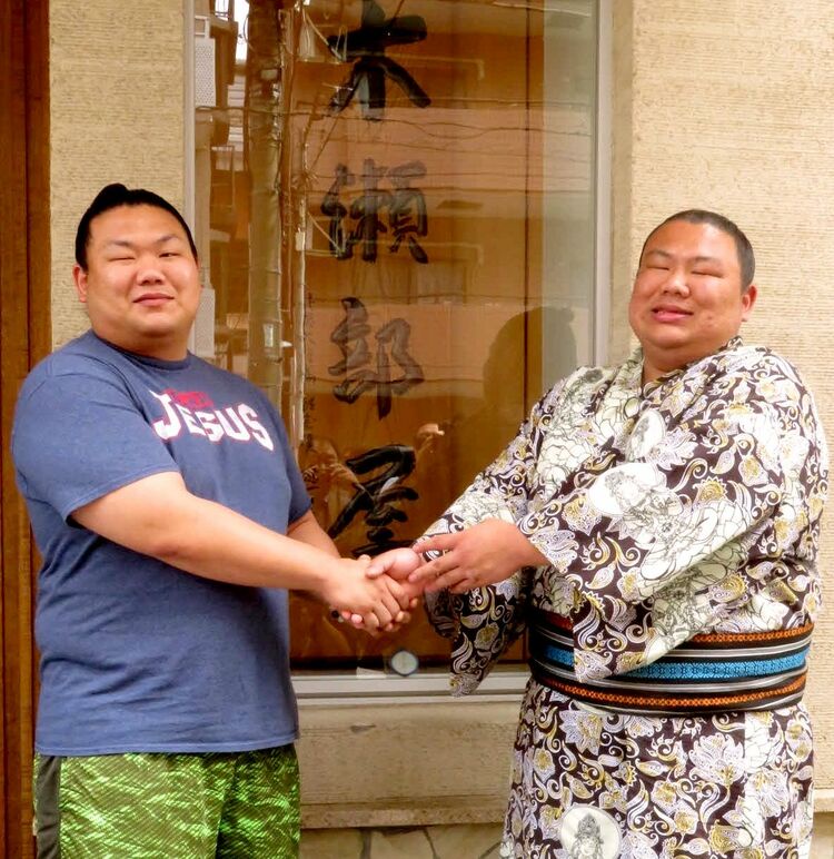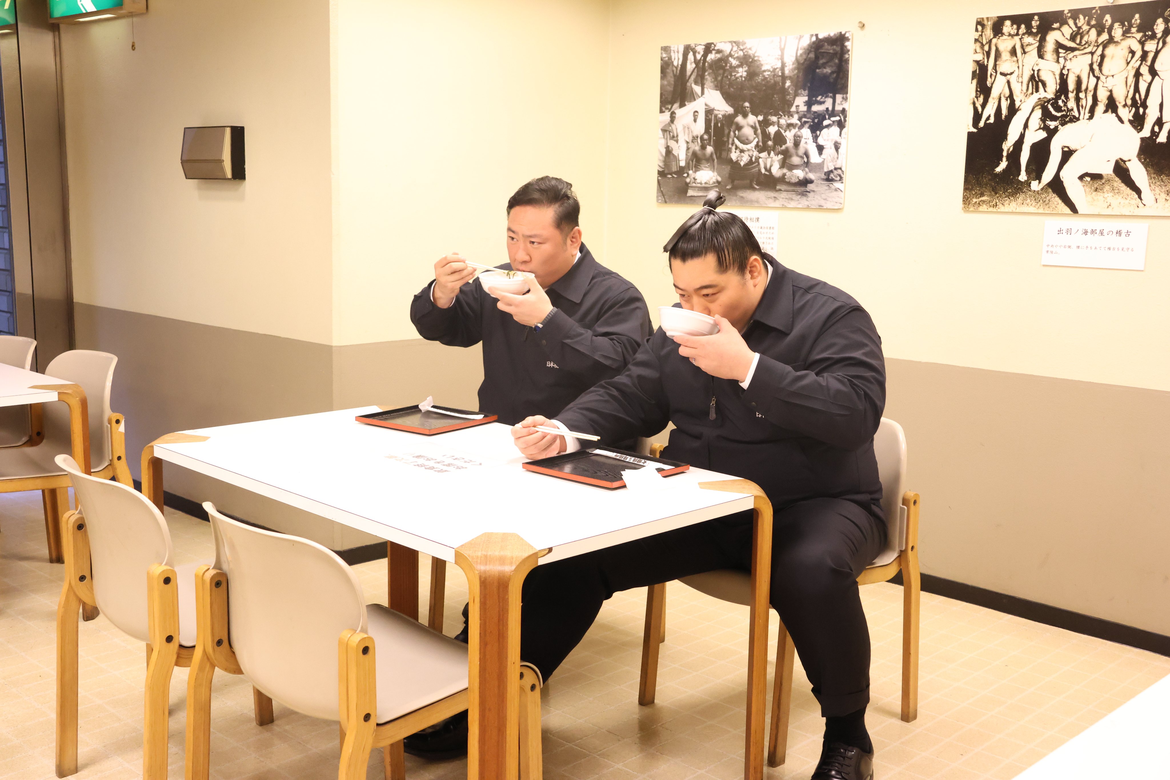 ちゃんこを食べる琴恵光と遠藤