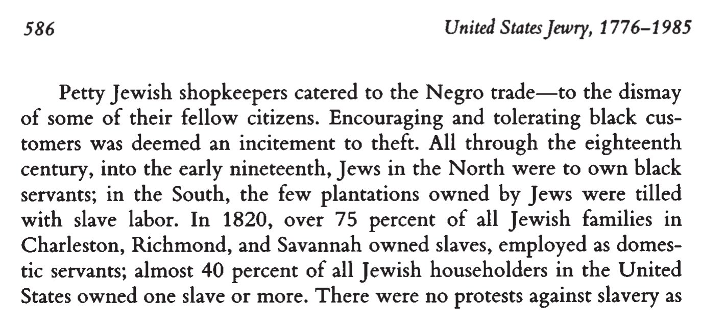 「米国の全ユダヤ人の世帯主のほぼ40パーセントが1人以上の奴隷を所有していた。」