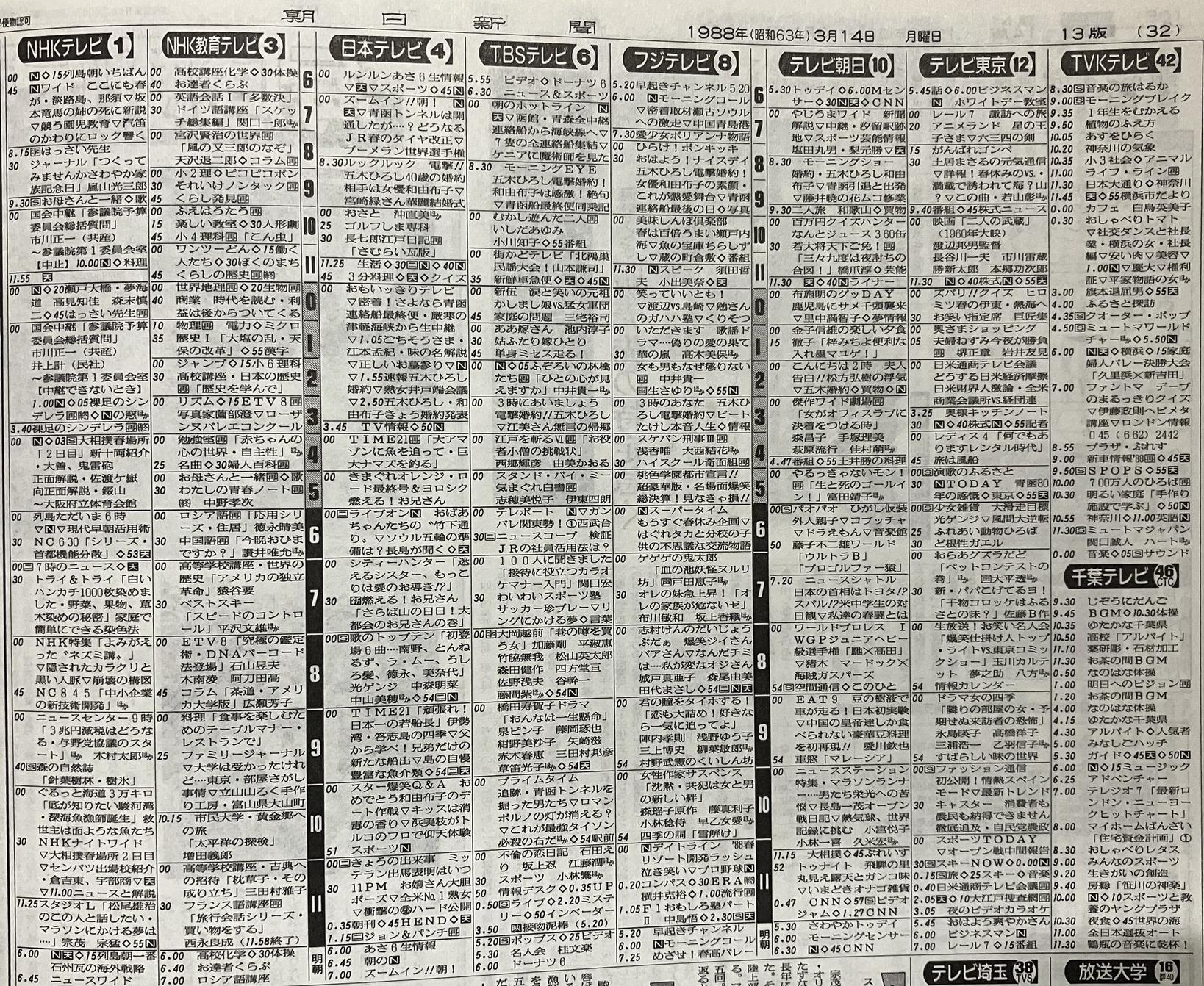 - 1988年3月14日のテレビ番組表(´・ω・`)