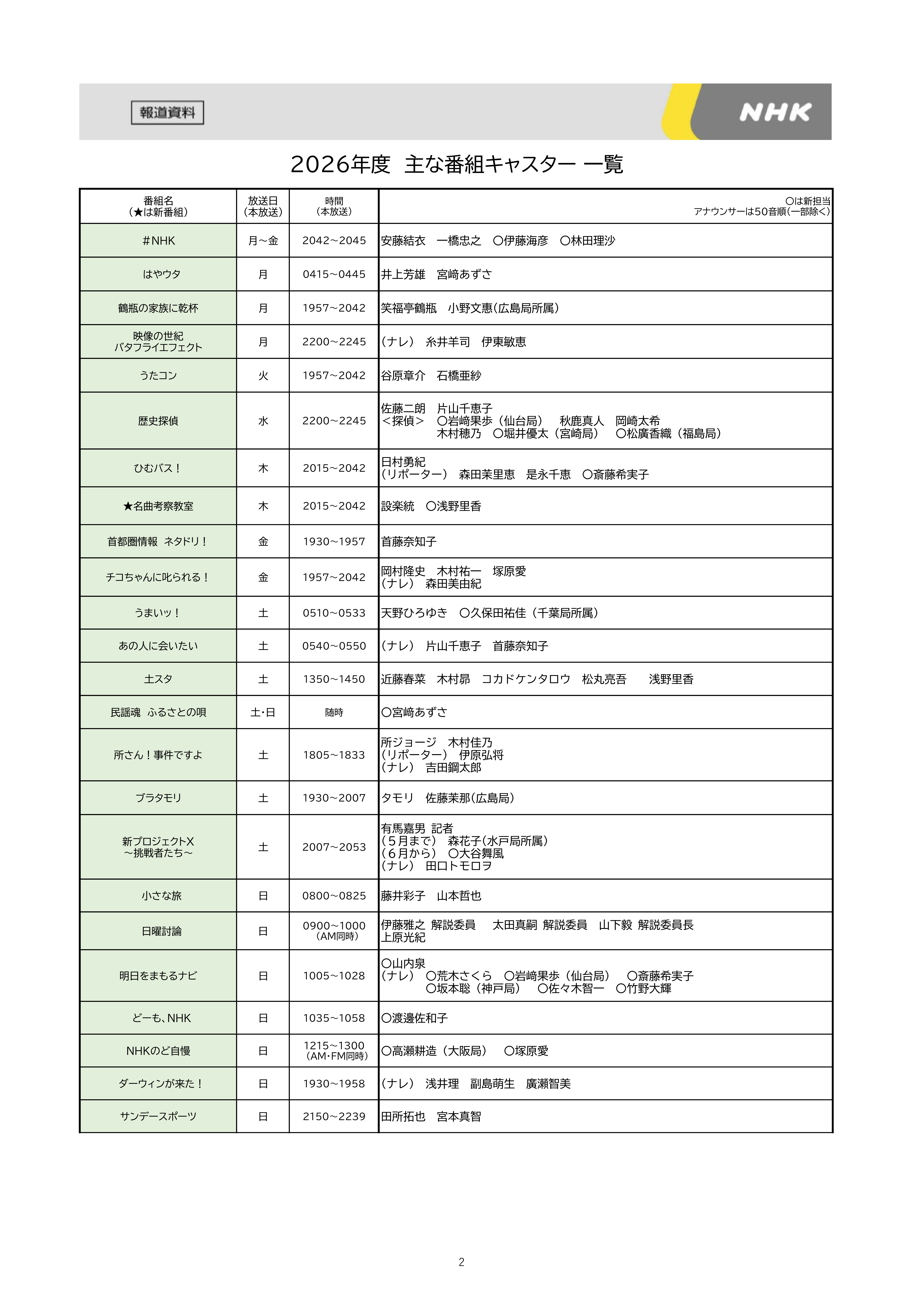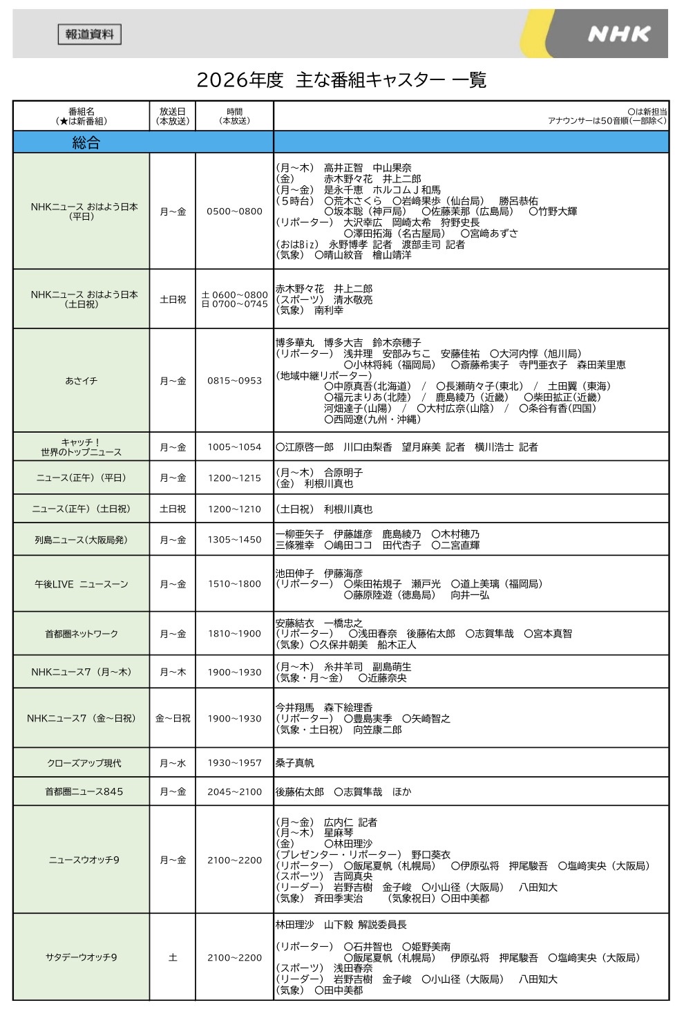 2026年キャスター 一覧(画像)