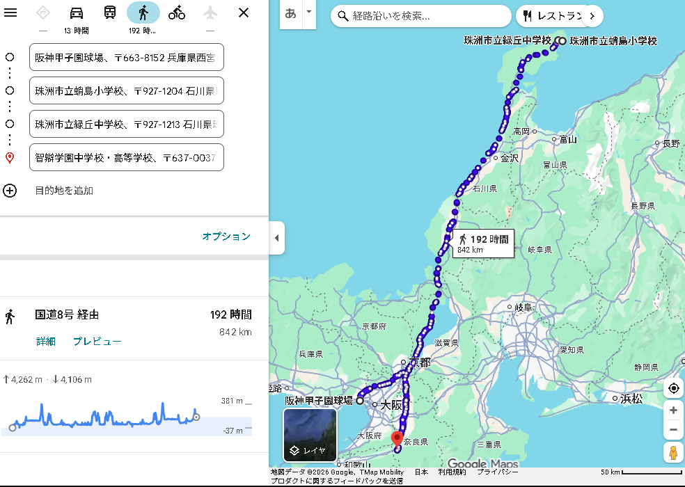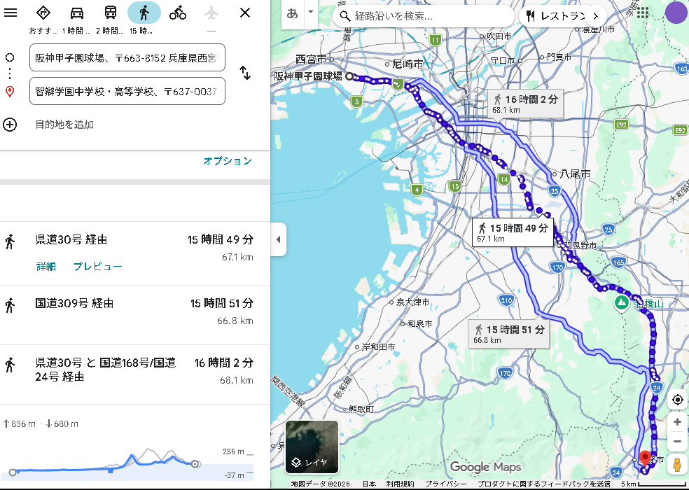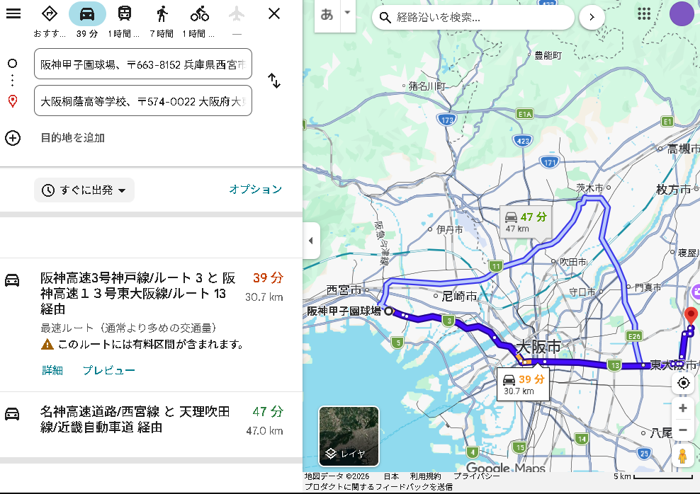 ※尚、甲子園球場→甲子園駅の約0.27kmは1分で突っ走れます。
