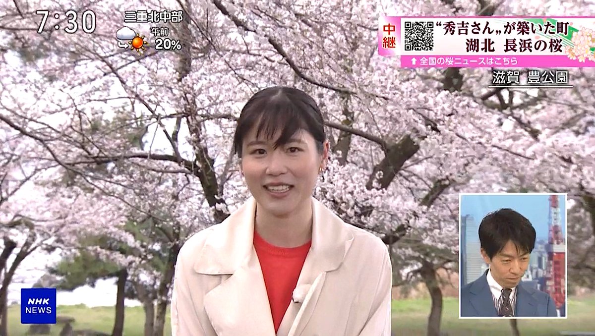 今朝の桜中継、大ベテランかとおもったら巳央ちゃんだったw