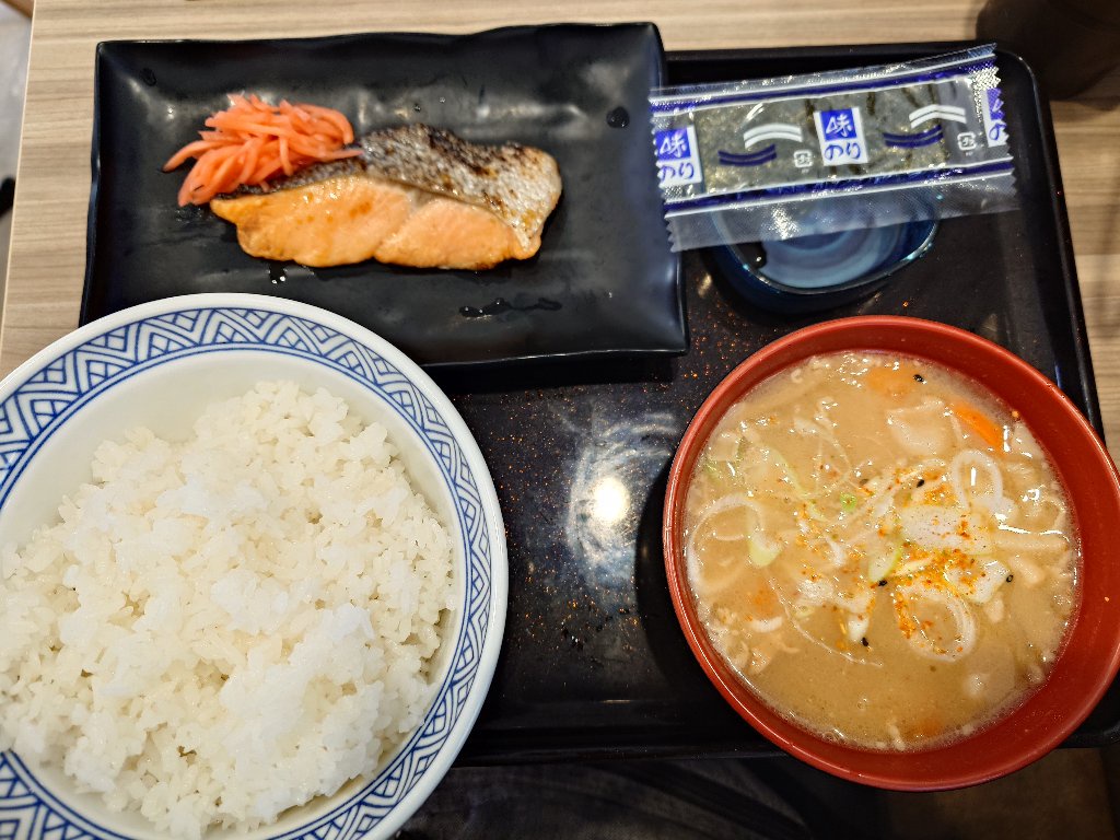 - 今朝は吉野家で焼魚定食豚汁変更をご飯大盛で美味しく食べていたんだけれど、