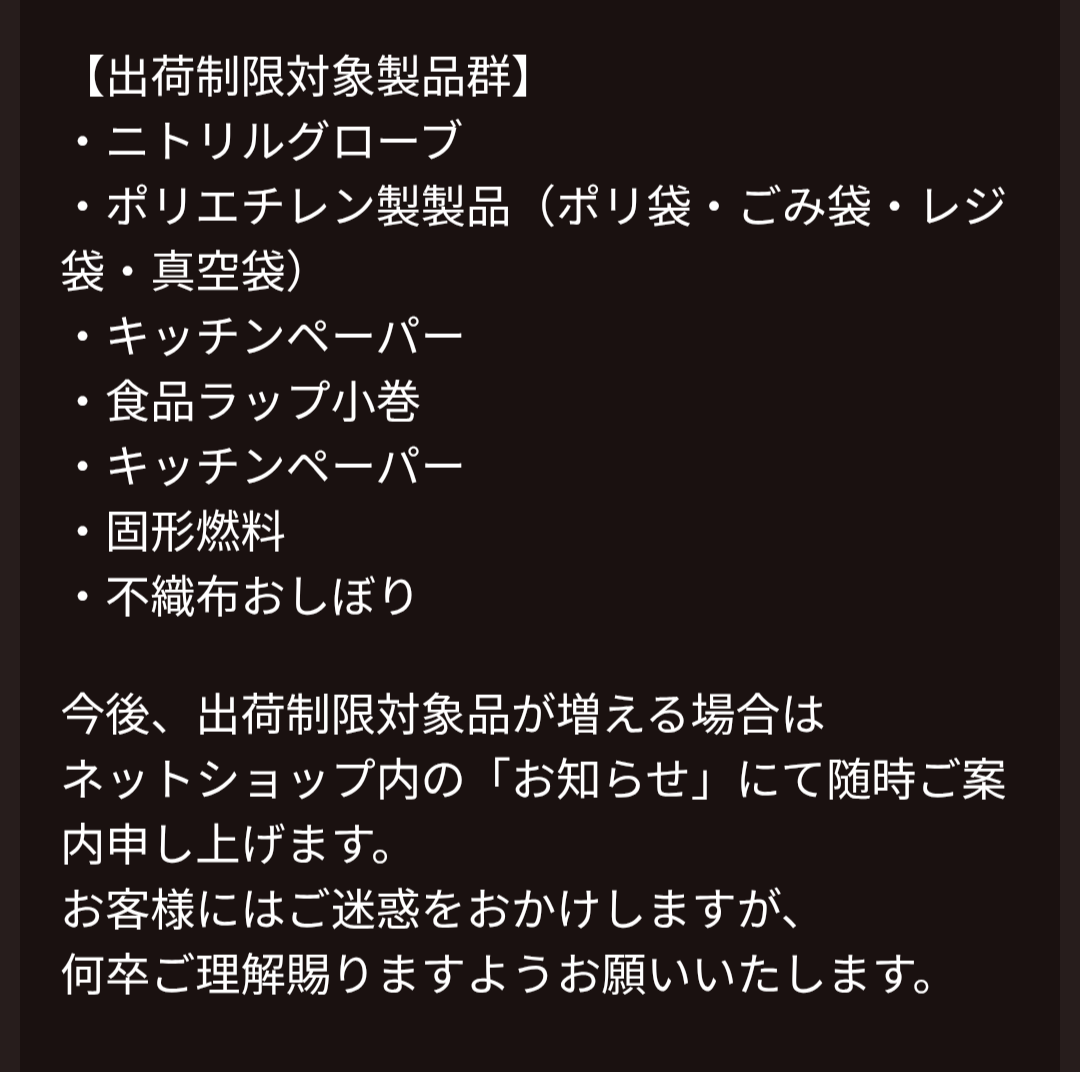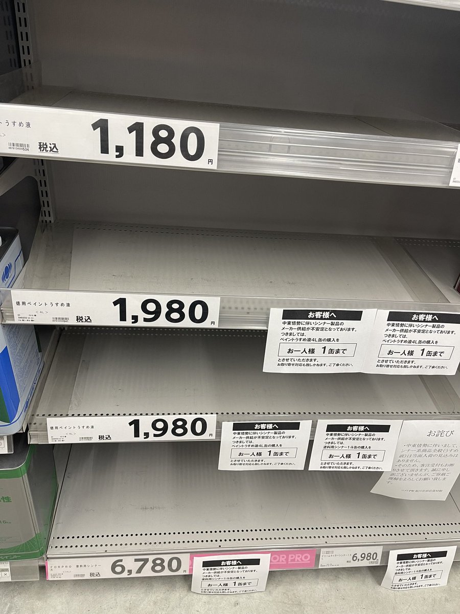 ナフサ、本当に入って来てないよ。棚空っぽ。ビニール袋と食品トレーは間近😱